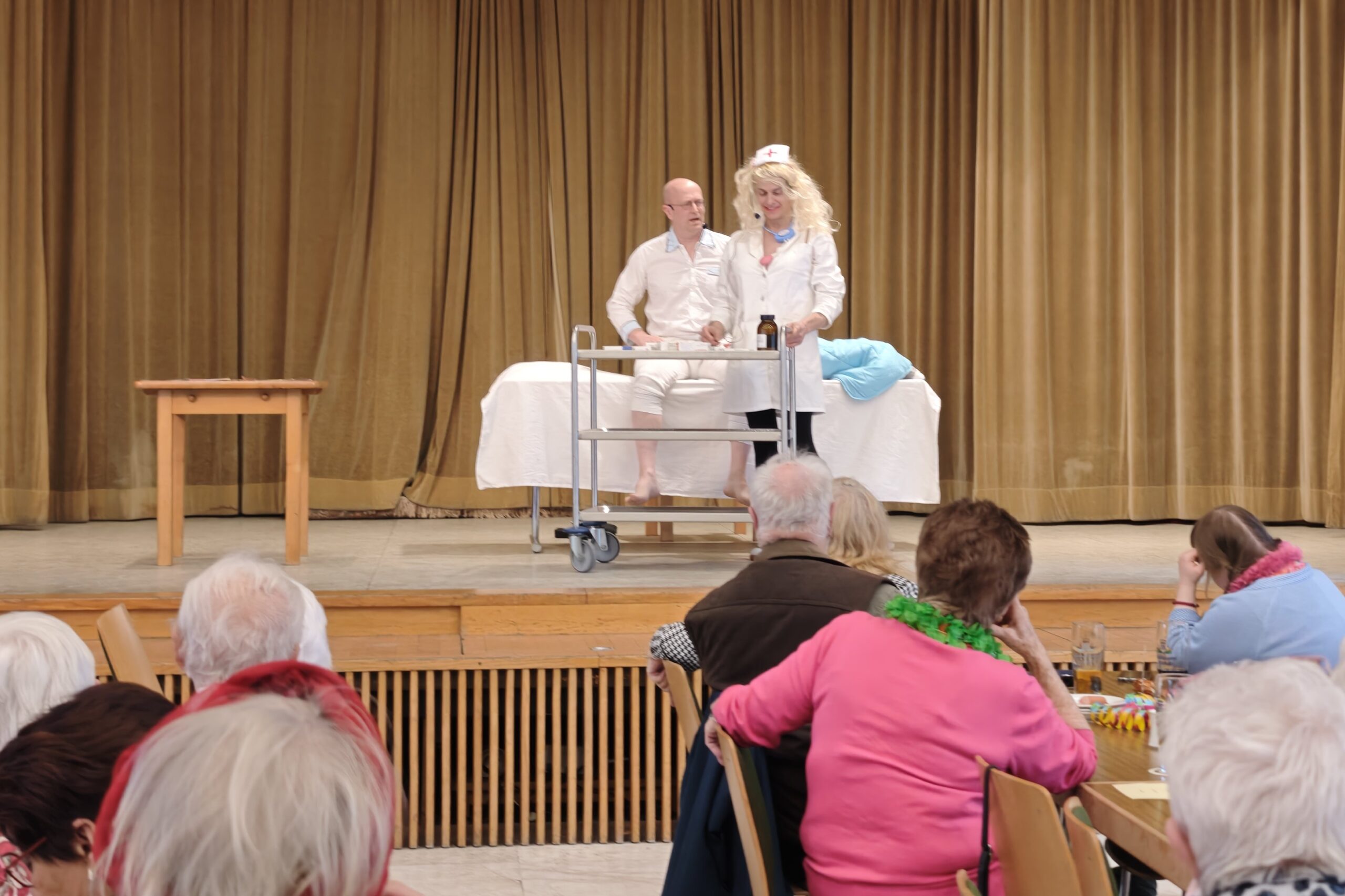 Mit sechs Sketchen wurden die Lachmuskeln der Besucher von einer kleinen Theatertruppe, bestehend aus Jennifer Mair, Andreas Mair, Gabi Kühr, Marion Schulze und Hermann Limmer, stark in Anspruch genommen. Die Leitung hatte Jennifer Mair inne.
