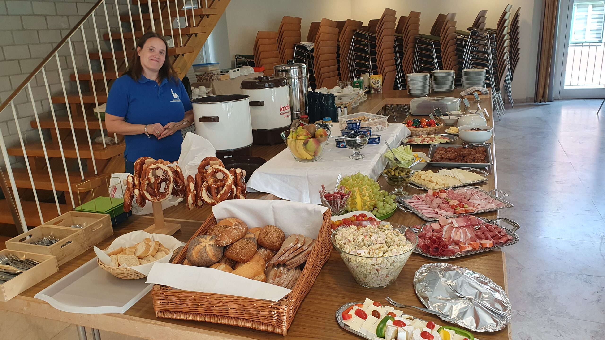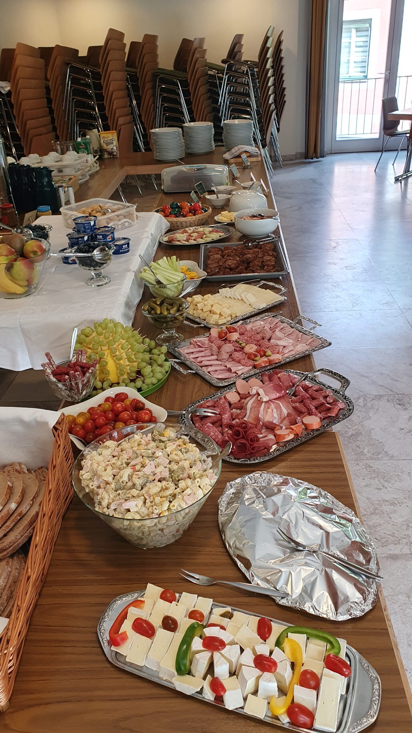 Auch in diesem Jahr organisierte der Pfarrgemeinderat einen Osterbrunch, der nun zum zweiten Mal stattfand. Etwa 45–50 Personen folgten der Einladung in den Pfarrsaal St. Jakob. Begrüßt wurden die Besucher mit einem Gläschen Sekt. Nach dem gemeinsamen Gebet und ein paar Begrüßungsworten von Stadtpfarrer Georg Leonhard Bühler konnte man sich am Buffet, das mit Kuchen, Käse- und Wurstplatten, Weiße und Wiener, verschiedenen Salaten, bunten Brotzeiteiern und noch vielem mehr, sehr reichhaltig bestückt war, bedienen und es war für jeden Geschmack etwas dabei. Die schön dekorierten Tischgruppen luden zu zahlreichen Gesprächen ein. Die Stimmung war durchwegs positiv, die Resonanz ebenso.