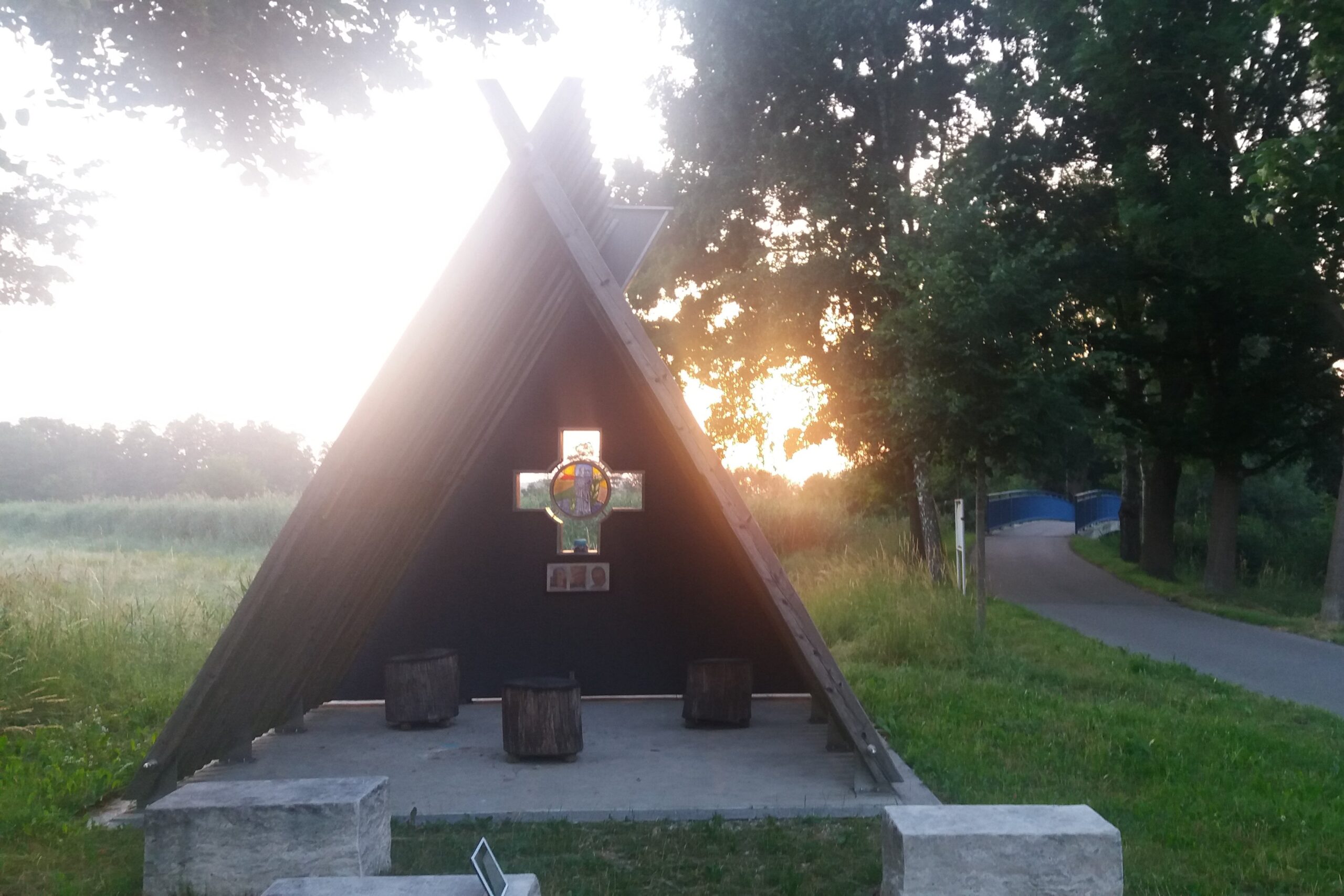So stand dann am 13. Juni 2015 das fertige Antonius-Refugium an seinem Platz und wartete auf ökumenische Segnung. Diese nahmen die beiden Pfarrherren Beyrer und Rupprecht unter reger Beteiligung der Bevölkerung vor. Der Rückhalt bei der Schrobenhausener Bürgerschaft für die Errichtung des Antonius-Refugiums drückt sich besonders aus im Umfang und in der Streuung der Geldspenden und in der Leistung von Bau- und Dienstleistungen. Diese sind an der Innenseite der Sparren auf kleinen Metallschildern verewigt.